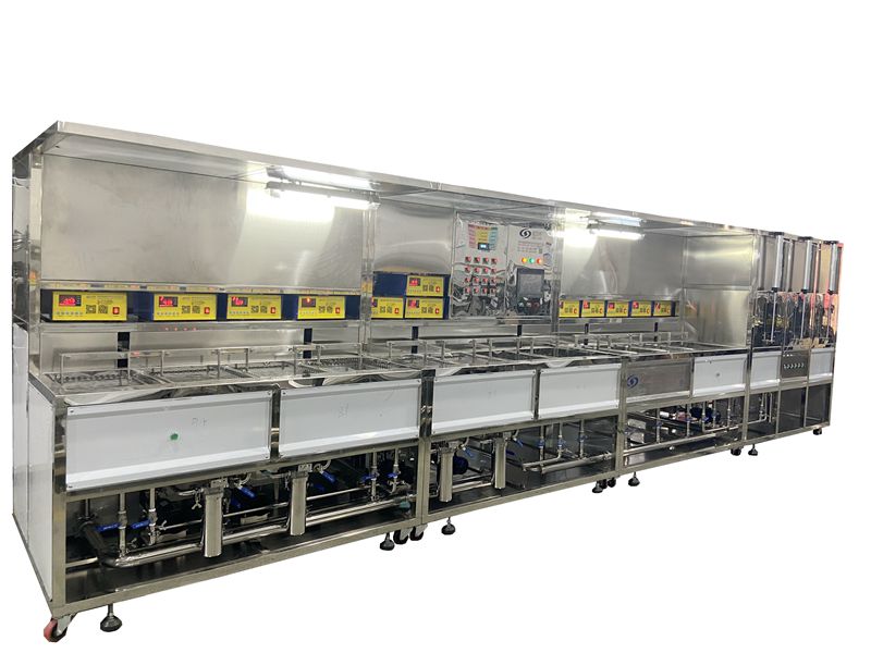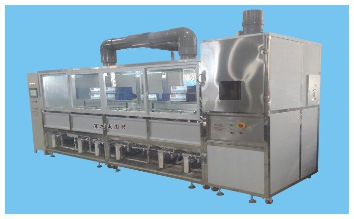 威固特VGT-609FTA超聲波清洗機(jī),設(shè)備共有6個(gè)功能槽,配置有循環(huán)過濾系統(tǒng)(袋式過濾系統(tǒng))、觸摸屏系統(tǒng)、拋動(dòng)系統(tǒng)、超聲波清洗系統(tǒng)、對(duì)流清洗系統(tǒng)、自動(dòng)智能式撥桿機(jī)械手系統(tǒng)、風(fēng)切系統(tǒng)等。