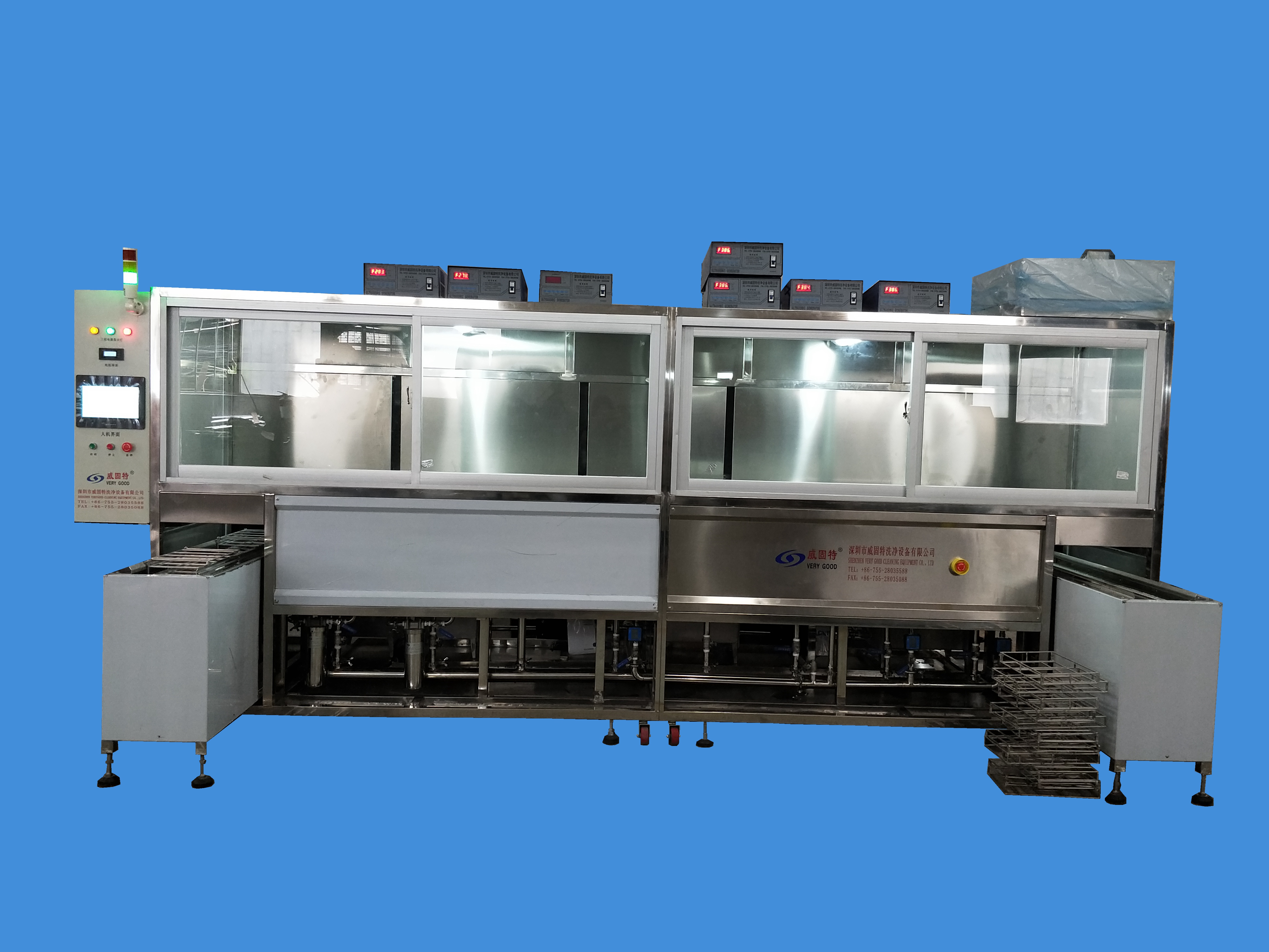 在清洗過(guò)程中工件通過(guò)超聲波高頻產(chǎn)生的“氣化現(xiàn)象”的沖擊和系統(tǒng)自身不停地作上下運(yùn)動(dòng),增加了液體的摩擦,從而使工件表面的污垢能夠迅速脫落,實(shí)現(xiàn)其高清潔度的目的。