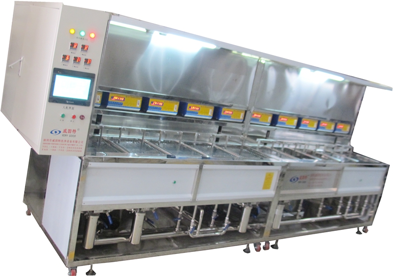VGT-409FHA工裝治具自動智能式超聲波清洗機(jī)設(shè)備共有4個功能槽,配置有拋動系統(tǒng)、自動恒溫系統(tǒng)、超聲波清洗系統(tǒng)、定時系統(tǒng)、慢拉脫水系統(tǒng)、熱風(fēng)烘干系統(tǒng)等。設(shè)備采用環(huán)保水溶劑洗滌、純水漂洗,為環(huán)保型清洗系統(tǒng)。